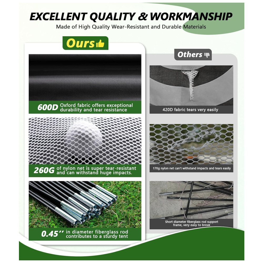 Com esta rede de prática de golfe, você pode aprimorar suas habilidades a qualquer hora e em qualquer lugar, economizando tempo e evitando o incômodo de viajar frequentemente para o campo de golfe. É o auxílio de treinamento de golfe perfeito para homens, meninos, iniciantes em golfe e jogadores de golfe.