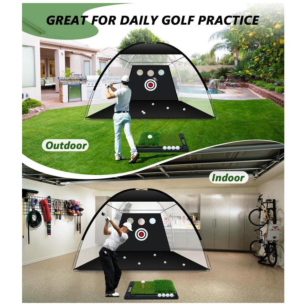 A Rede de Prática de Golfe AllinOne Multiple Target Golf Practice Net é ideal para quem deseja aprimorar suas habilidades no conforto do quintal. Com dimensões de 3 x 2,1 metros, a rede oferece espaço suficiente para praticar chipping e dirigir. Além disso, três alvos pequenos mais altos são ideais para aprimorar a precisão.