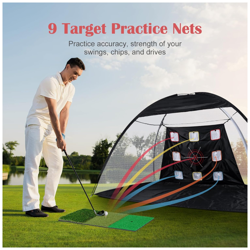 Rede de Treino para Golfe de 3m x 21m Inclui 10 Bolas de Golfe de PU 11 Tees de Golfe 2 Tees de Borracha e 1 Bolsa de Transporte para Ambientes Internos e Externos G2 GO2GETHER Preta