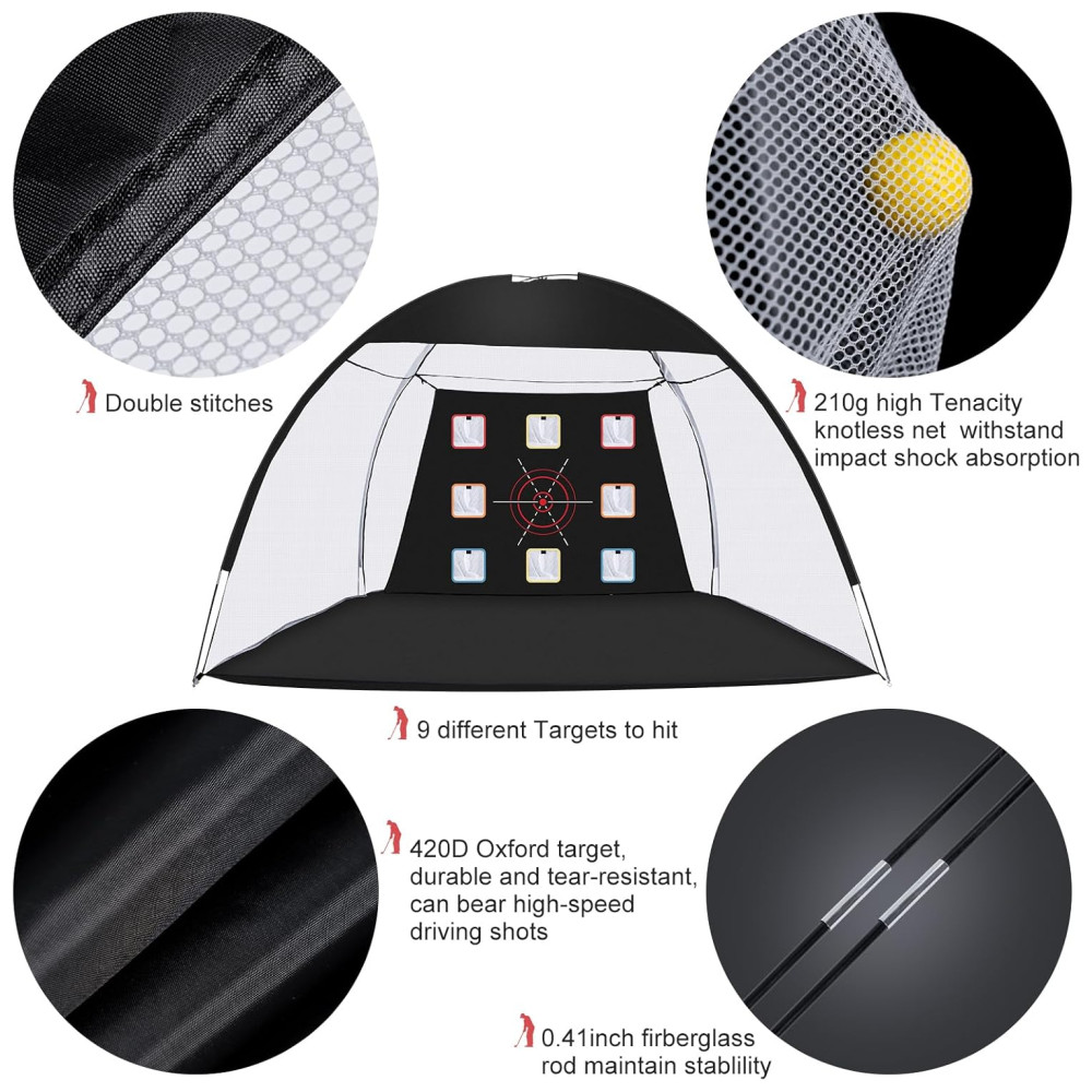 A Rede de Rebatedas de Golfe atualizada é perfeita para quem deseja praticar suas tacadas de forma fácil e conveniente. Equipada com tecido Oxford 420D e rede de malha de nylon reforçada de 210g, além de hastes de fibra de vidro de 11 mm, a rede oferece uma ampla área de rebatidas com dimensões de 3m x 2,1m.