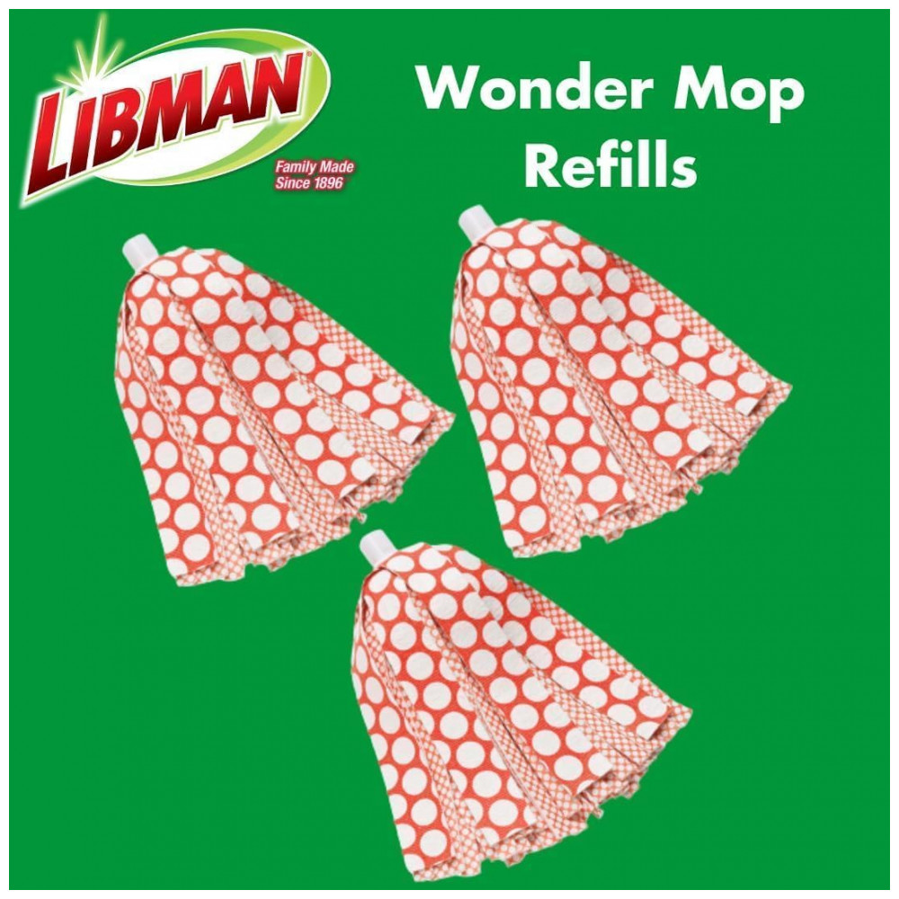 3 RECARGAS TOTAIS Estão incluídas três recargas Wonder Mop, que são a substituição direta do seu Libman Wonder Mop. Aproveite a mesma experiência de alta qualidade com essas recargas convenientes e duráveis