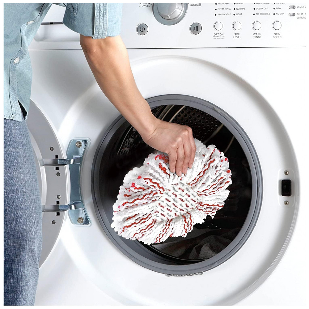 LAVÁVEL NA MÁQUINA E REUTILIZÁVEL A cabeça do esfregão de substituição pode ser lavada na máquina e reutilizada várias vezes, economizando tempo e dinheiro na limpeza. Mantenha um refil extra à mão para a próxima bagunça.