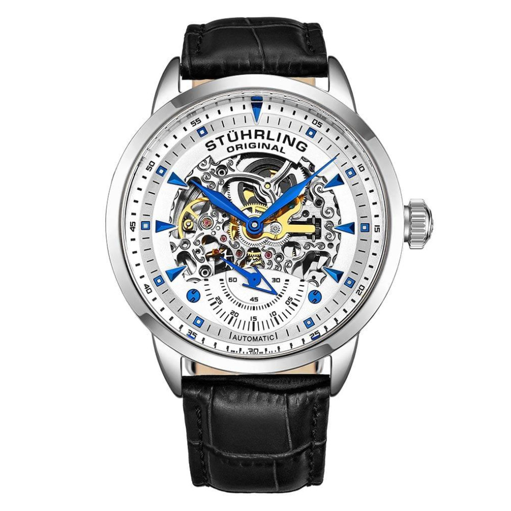 Relgio Automtico Executive 3133 de 44mm Mostrador Branco e Pulseira de Couro Preta com Fivela de Prata – Stuhrling.