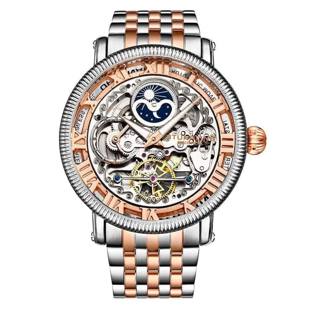 Relgio Automtico Reserva Especial 3922 e 3923 48mm Mostrador Rosa e Prata Pulseira de Ao Inoxidvel Rosa com Fivela Deployant – Stuhrling