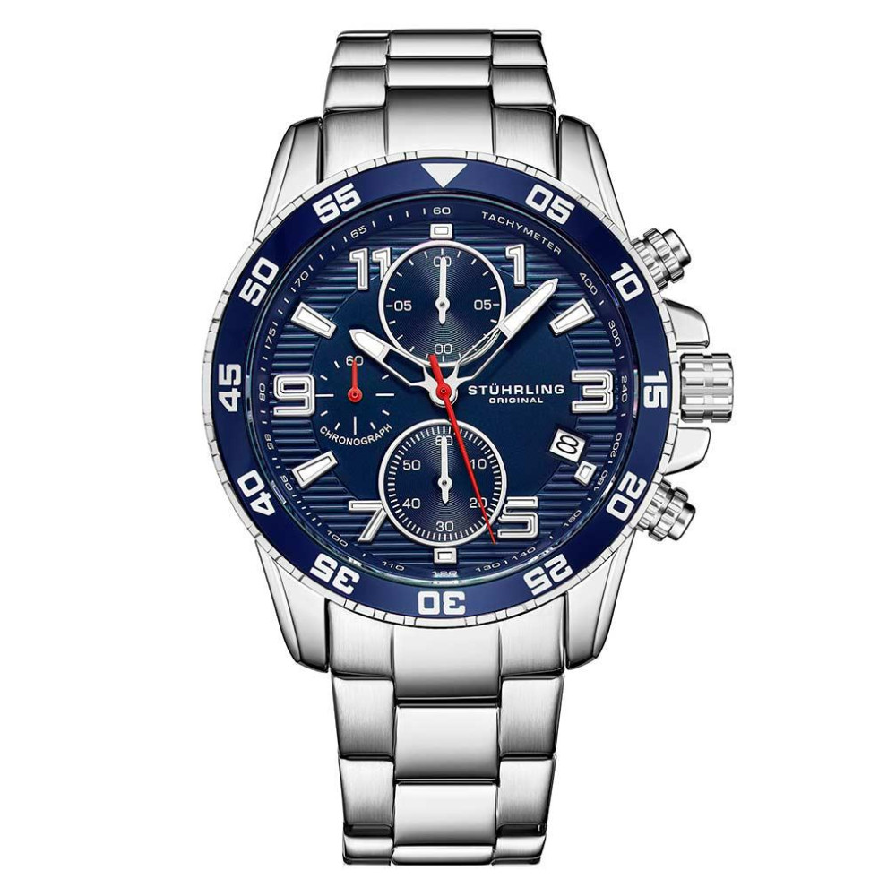 Relgio Concorso 3957 Crongrafo 40mm Mostrador Azul e Pulseira em Ao Inoxidvel Prateado – Stuhrling
