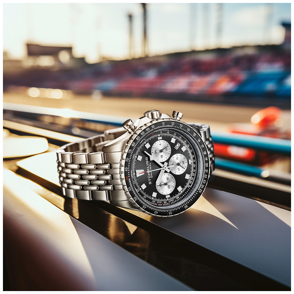 O Relgio crongrafo RaceWay 1010 44mm da Stuhrling a escolha perfeita para quem busca um relgio elegante e funcional. Com um movimento crongrafo japons de alta preciso, este relgio ideal para medir o tempo com exatido. Alm disso, a pulseira de contas de ao inoxidvel de alta qualidade adiciona um toque de sofisticao ao seu visual. Com trs submostradores altamente funcionais e uma janela de exibio de data, este relgio nunca o deixar perder o ritmo. A escala taquimtrica habilmente projetada ao redor da moldura permite medir a velocidade em uma distncia conhecida, enquanto a moldura giratria bidirecional adiciona uma camada extra de funcionalidade. Com a luminosidade japonesa de alta qualidade, voc desfrutar de luminosidade superior em iluminao fraca, garantindo que nunca se perca no tempo. Com um design elegante e resistente em preto mate, o Relgio crongrafo RaceWay 1010 44mm um acessrio indispensvel para o homem moderno.