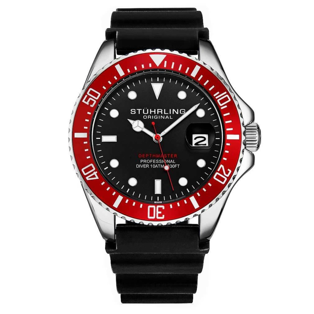 Relgio Depthmaster 3950R 42mm Mostrador Preto e Prata Pulseira de Borracha e Fivela de Prata – Stuhrling