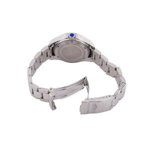 Uma pulseira de ao inoxidvel completa este relgio que pode resistir gua por at 100 m.