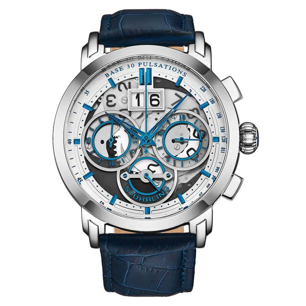 Relgio Imperia 4030 Crongrafo 47mm Mostrador Prateado e Pulseira de Couro Azul Stuhrling