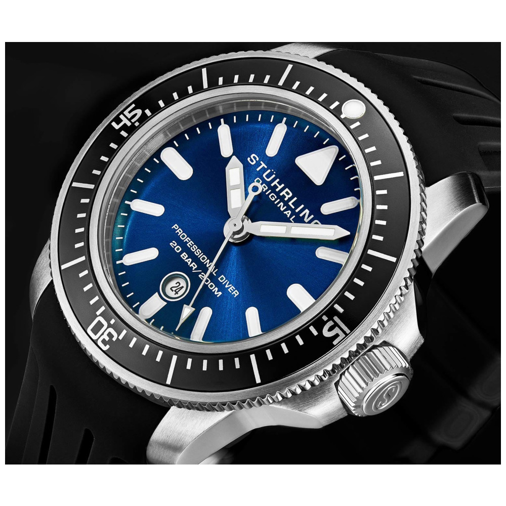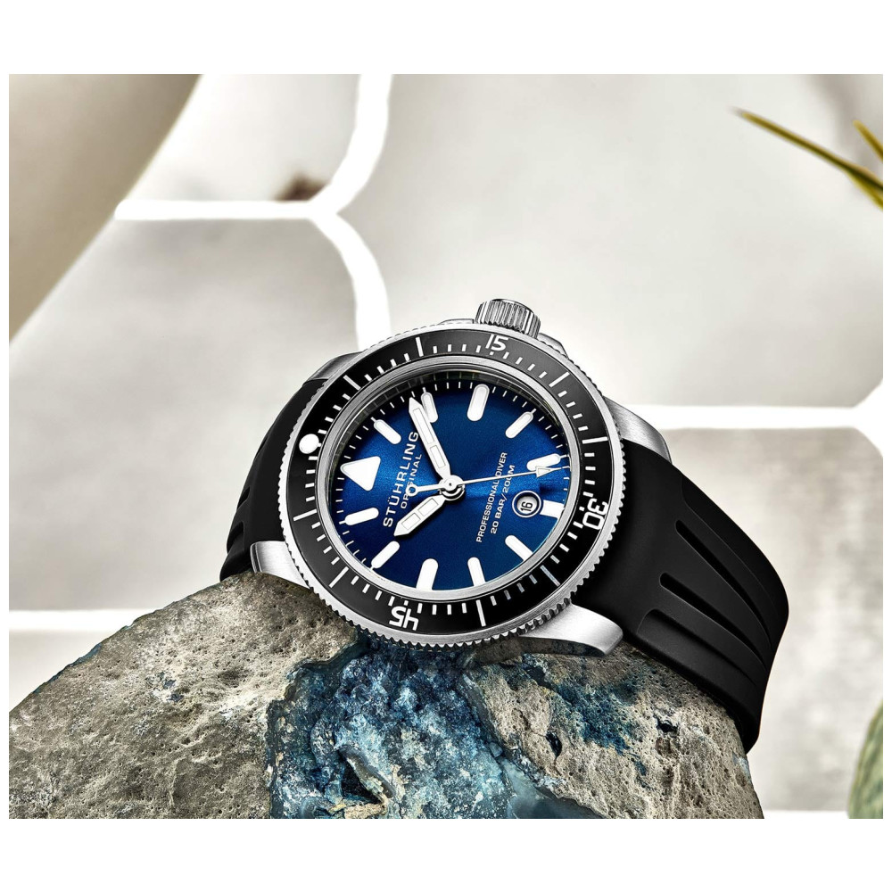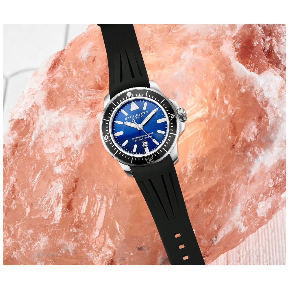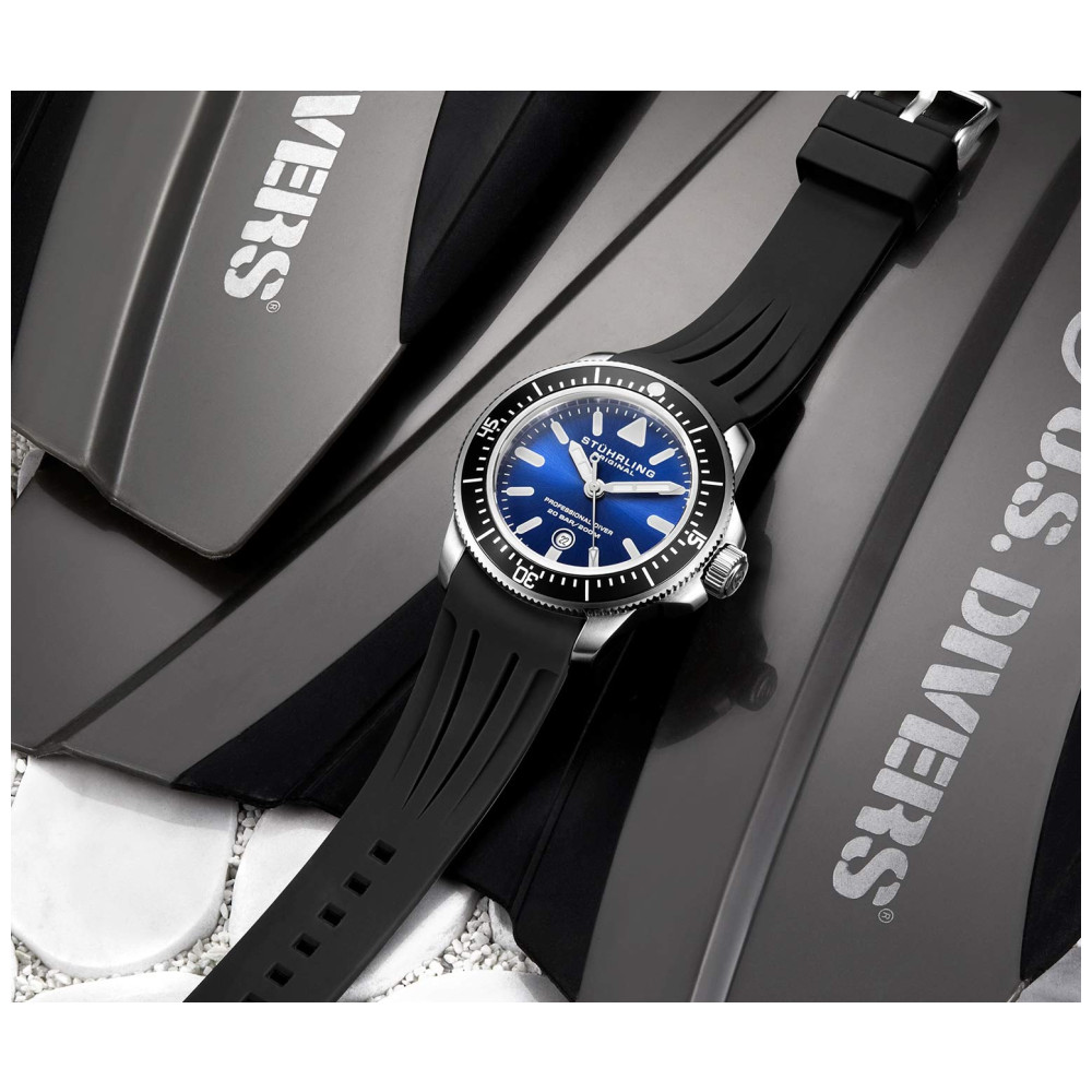 Relgio Maritimer 935 43mm Mostrador Azul Pulseira de Borracha Preta Stuhrling