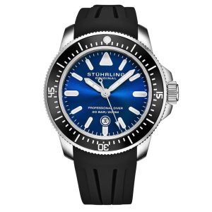 Relgio Maritimer 935 43mm Mostrador Azul Pulseira de Borracha Preta Stuhrling