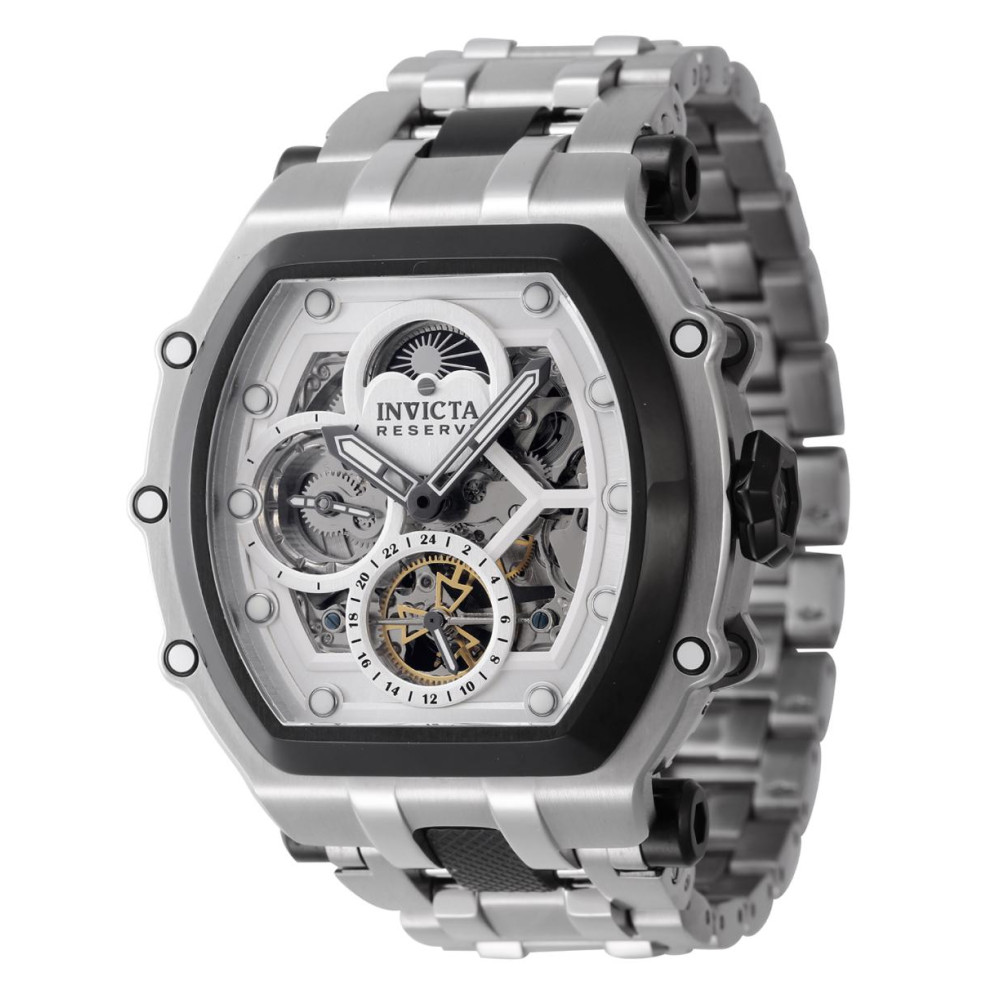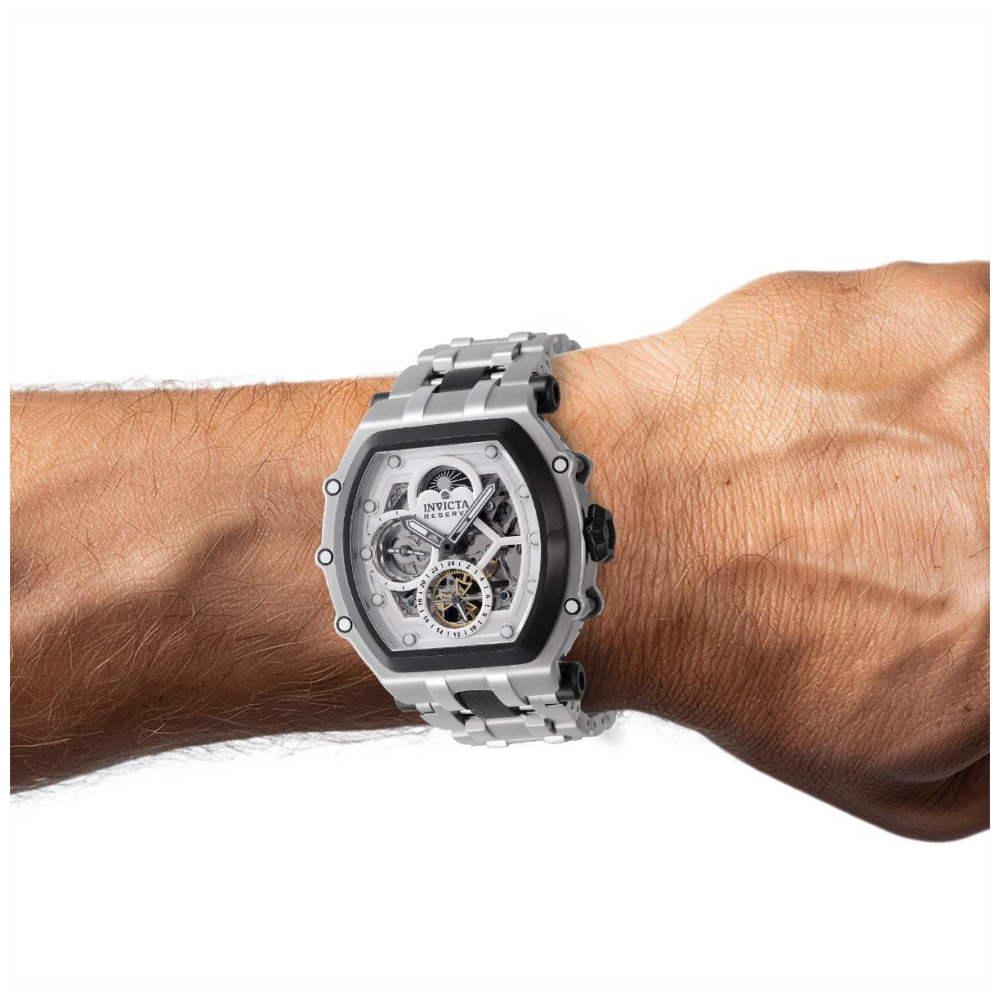 Este lindo relgio Invicta Reserve contm um movimento Automtico preciso alm de uma caixa preta de ao.