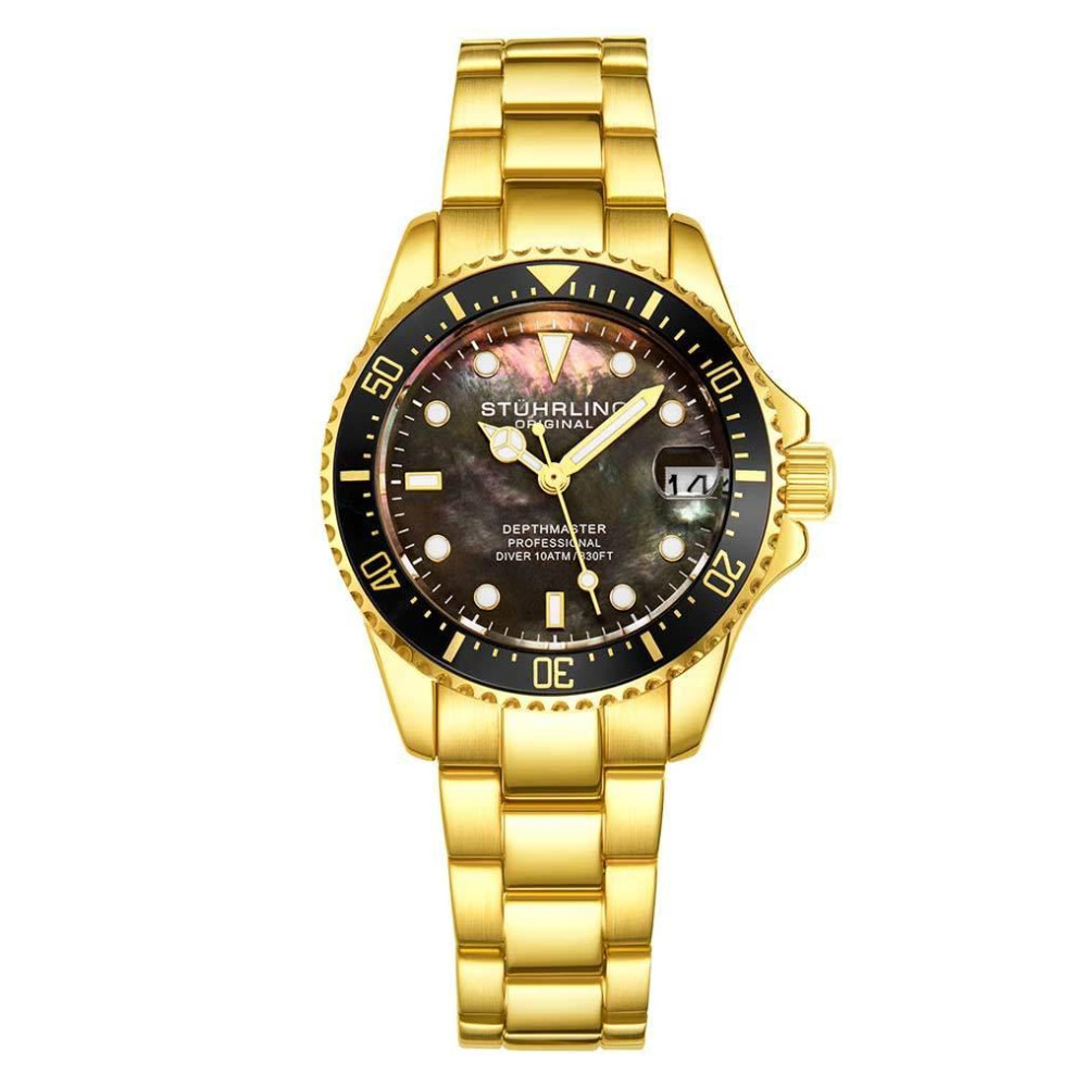 Relógio Masculino Depthmaster 32 mm Design Moderno Mostrador Preto e Pulseira Dourada em Aço Inoxidável