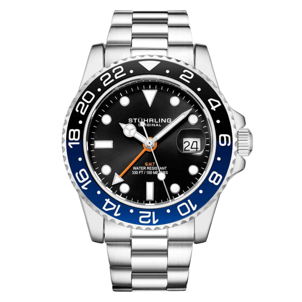 Relgio Masculino Meridian 3965 42mm Mostrador Preto e Pulseira de Ao Inox Prateada com Fivela de Implantao – Stuhrling