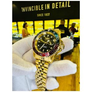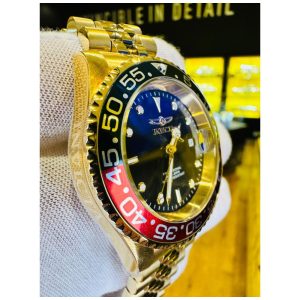 Este atraente relgio Invicta da coleo Pro movido por um movimento preciso, com caixa dourada.