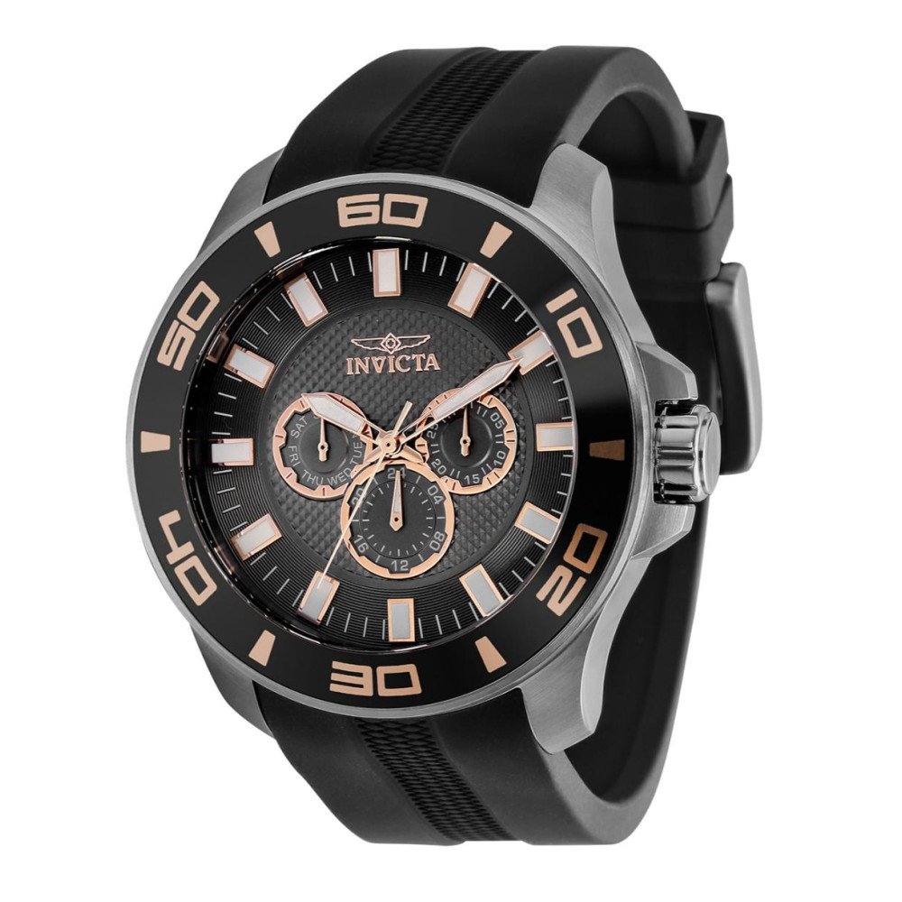Este um relgio Invicta da coleo Pro, com um movimento preciso e uma caixa robusta de metal. Possui um mostrador metlico coberto por um durvel Flame Fusion Crystal e uma pulseira de silicone preta confivel. resistente gua at 100m, permitindo que voc mergulhe em qualquer horizonte com a orientao constante do Invicta Pro. Este relgio clssico e elegante, com um funcionamento interno forjado com variaes de movimentos ousados. A Invicta tem um compromisso com a excelncia e a inovao desde sua criao na Sua em 1837. Voc pode encontrar o mais extenso catlogo de relgios desta magnfica marca aos preos mais baixos online nas Lojas Invicta. As imagens podem diferir ligeiramente do produto real.