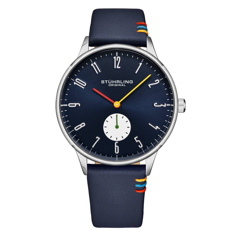 Relgio Masculino Stuhrling 42mm Clssico Marinho e Prata com Pulseira em Couro Marinho