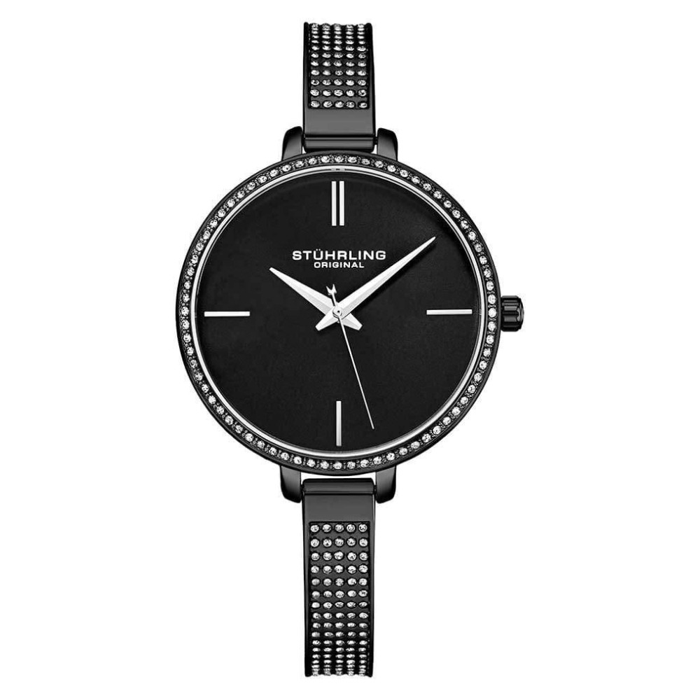Relógio Stuhrling Pentai 36mm Design Fashion Mostrador Preto Pulseira Aço Inoxidável Preta com Fivela