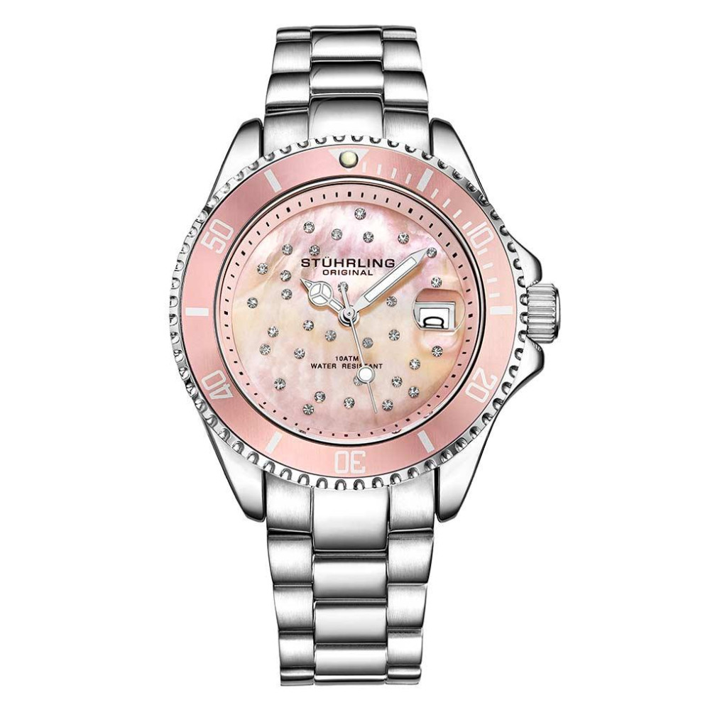 Relgio StarSea 3977 39mm com Mostrador Rosa e Pulseira de Ao Inoxidvel Prateado – Stuhrling