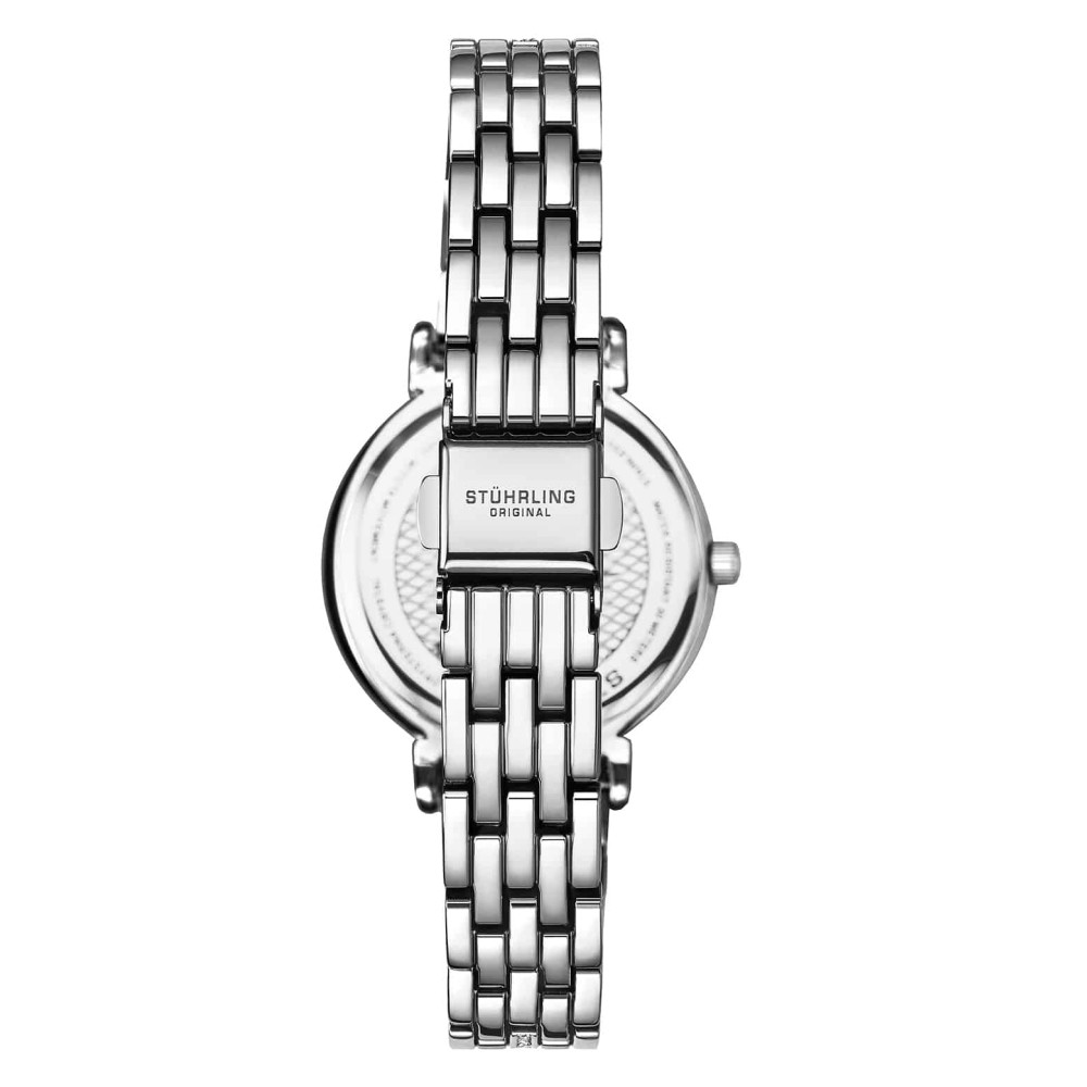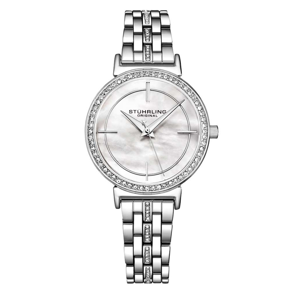 O relógio Stuhrling 3987 é um elegante acessório de moda com mostrador prateado e pulseira de aço inoxidável prata, medindo 33 mm. Possui resistência à água de 3 ATM, equivalente a 30 metros ou 100 pés, o que o torna perfeito para uso diário e adequado para atividades aquáticas leves. A moldura cravejada de cristais adiciona um toque de sofisticação, enquanto a pulseira com elos de 14,0 mm de largura, também adornada com cristais, confere brilho e elegância ao design. Este relógio é a escolha ideal para quem busca um acessório de moda elegante e funcional.