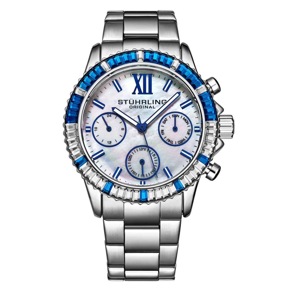 O Relgio Stuhrling de 39mm um produto elegante e sofisticado que apresenta um mostrador prateado e uma pulseira de ao inoxidvel prateada. Com um tamanho de 39mm, ele perfeito para quem busca um relgio discreto e confortvel. Alm disso, ele resistente gua at 50 metros (165 ps), o que o torna ideal para quem pratica esportes aquticos ou atividades ao ar livre. O relgio tambm possui um cristal cravejado em sua borda, o que adiciona um toque de brilho e glamour ao seu design. O bisel unidirecional e a pulseira de 20mm de largura completam o visual moderno e elegante deste relgio de alta qualidade.