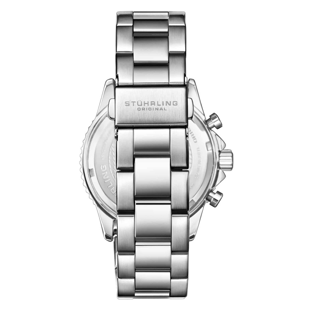 Relgio Stuhrling 39mm com mostrador prateado e pulseira de ao inoxidvel prateada.