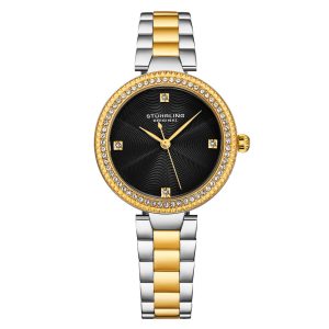 Relgio Stuhrling Brilliance 4043 com pulseira em ouro amarelo e prata mostrador preto clssico de e 2 tons