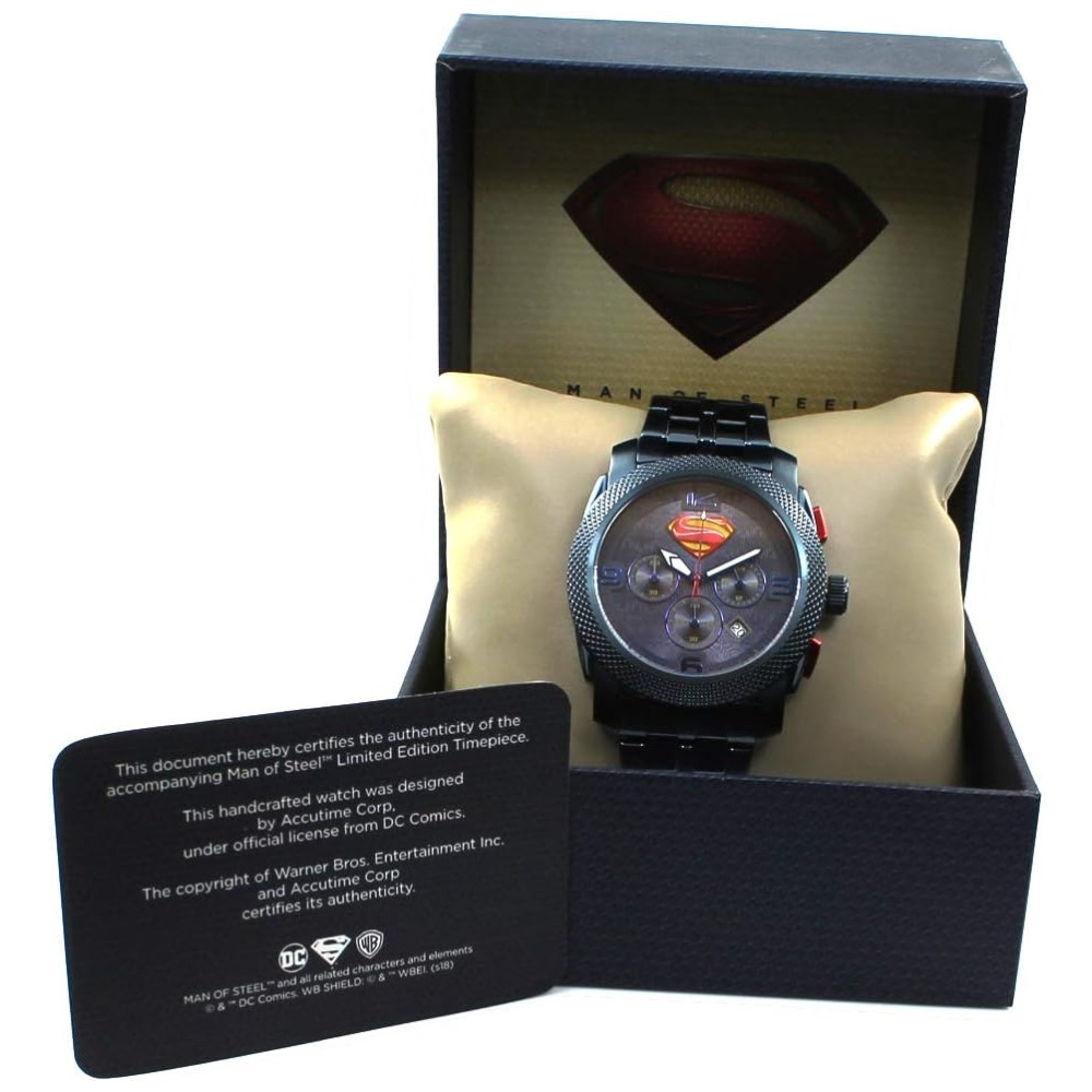O relógio usa o movimento do Japão e possui funções de cronógrafo e data. O mostrador do relógio apresenta a mesma textura e padrão vistos no último traje do Homem de Aço.