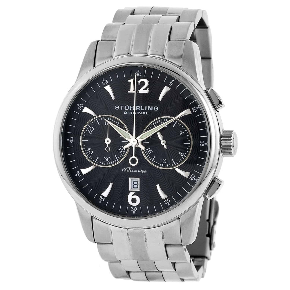 Relógio Aristocrata Elite 186B 43mm com Mostrador Preto e Pulseira de Aço Inoxidável – Stuhrling