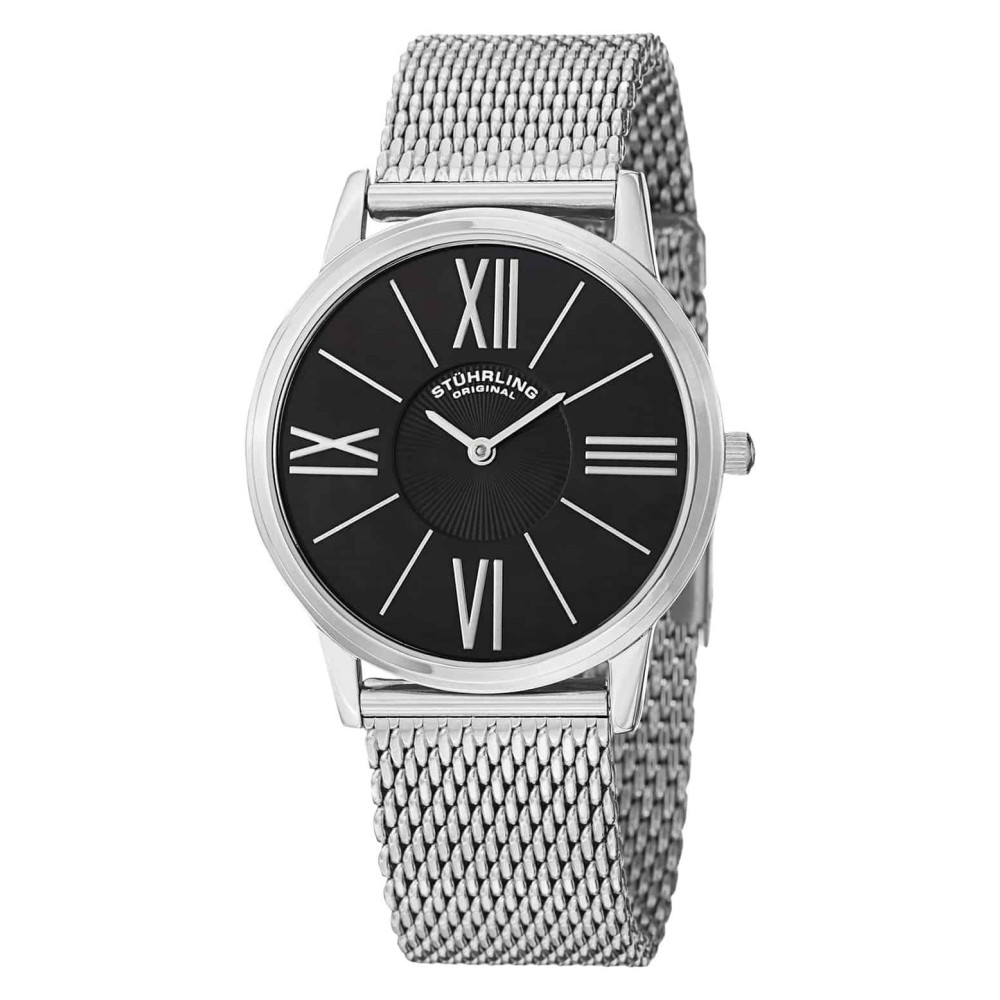 Relógio Ascot Solei Elite 533M com mostrador preto e pulseira de aço inox prateado de 38mm – Stuhrling.