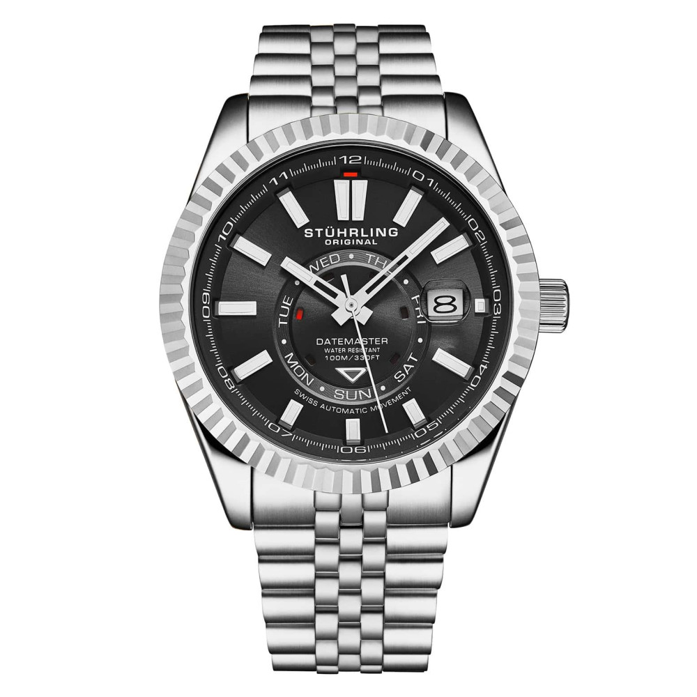 Relógio Automático Datemaster Swiss 1020 42mm com Mostrador Preto e Pulseira Prateada – Stuhrling.