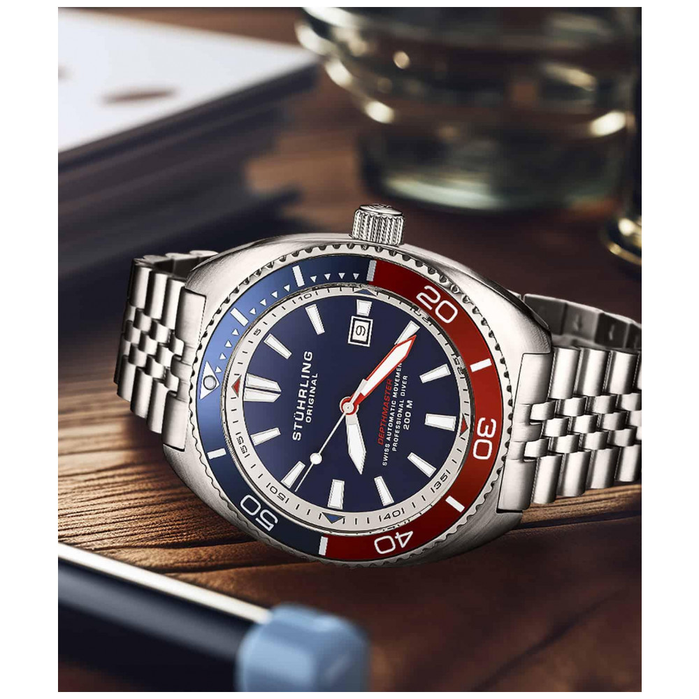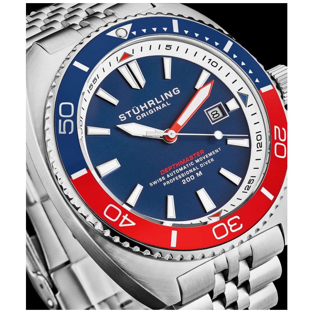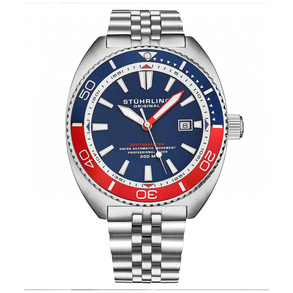 Relógio Automático Depthmaster 1008 45mm Suíço Azul e Vermelho Stuhrling
