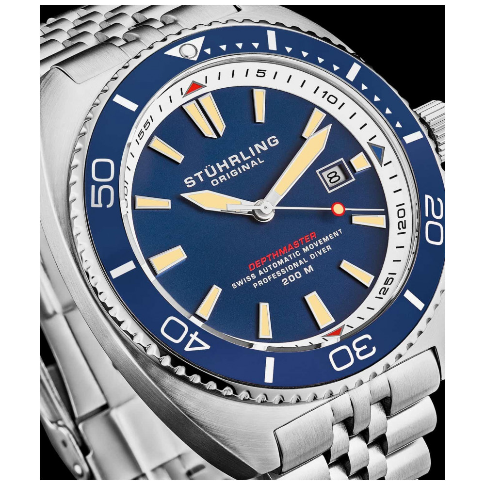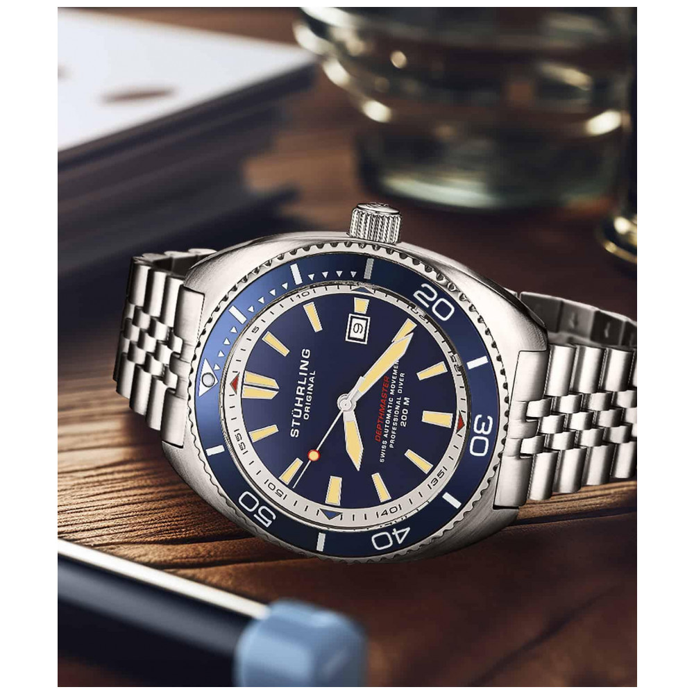 Relógio Automtico Depthmaster 1008 45mm Suíço Azul com Pulseira de aço inoxidável Stuhrling