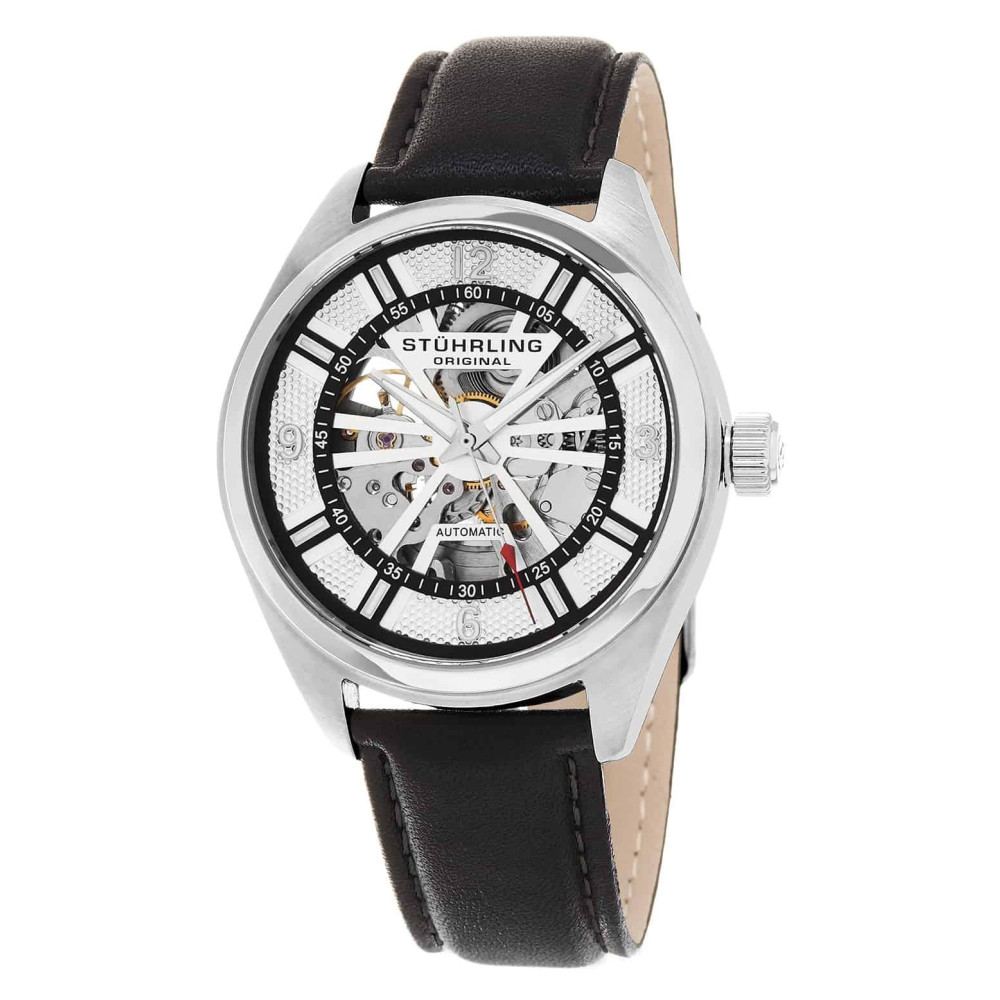 Relógio Automtico Turbine 598 com Mostrador Prateado de 42mm e Pulseira de Couro Preta Stuhrling