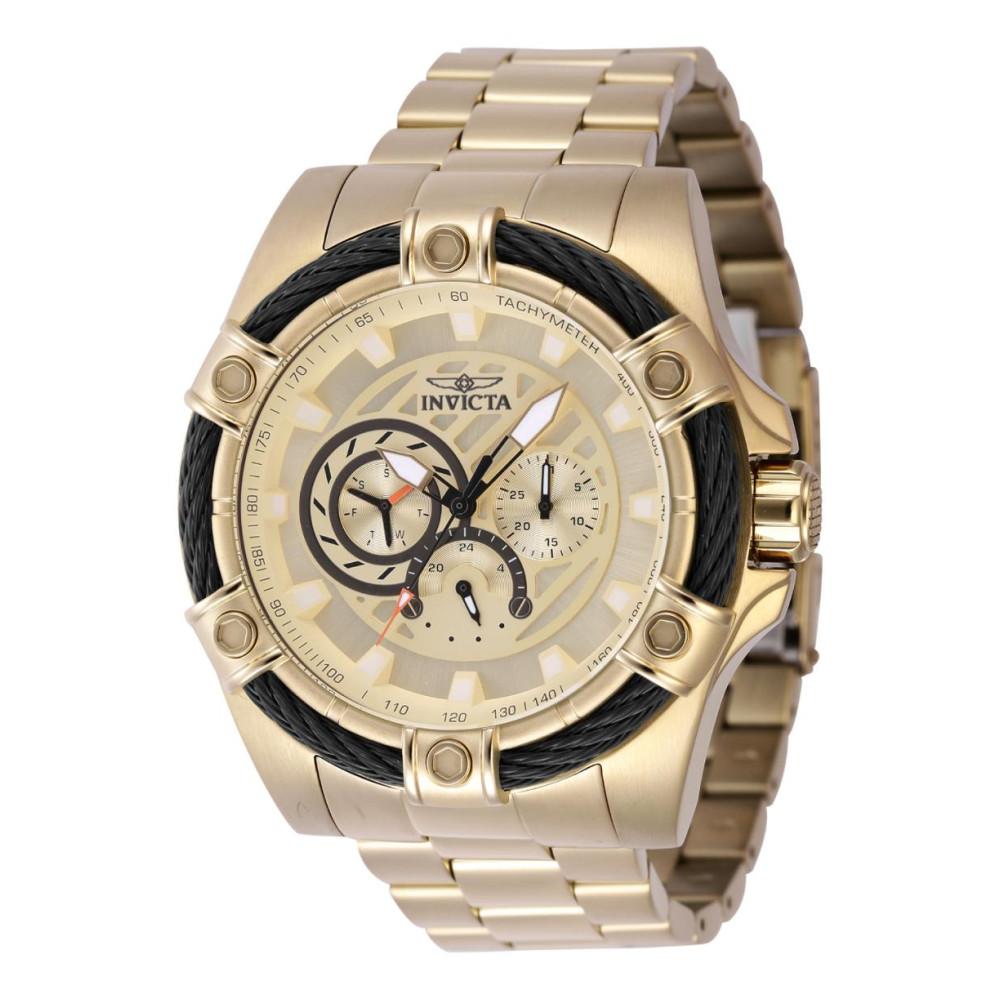 Este impressionante relógio Invicta Bolt apresenta um movimento preciso e uma caixa dourada
