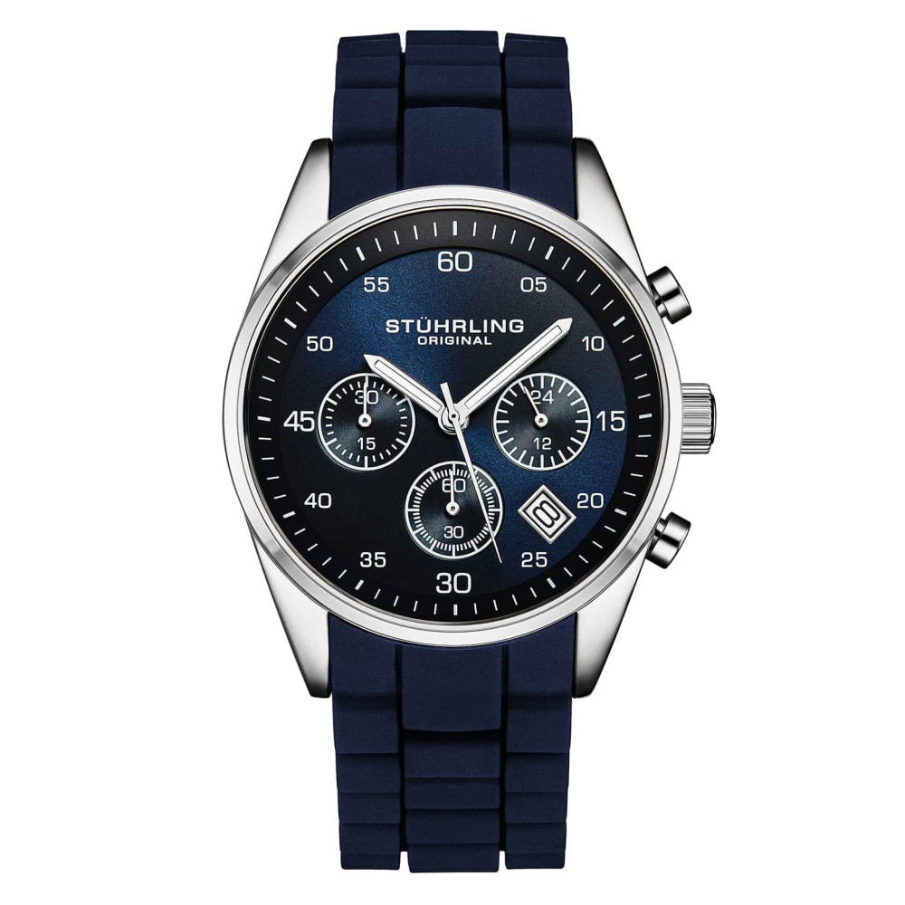 Relógio Chronograph 42mm Mostrador Azul e Prata Pulseira de Silicone Azul Stuhrling.
