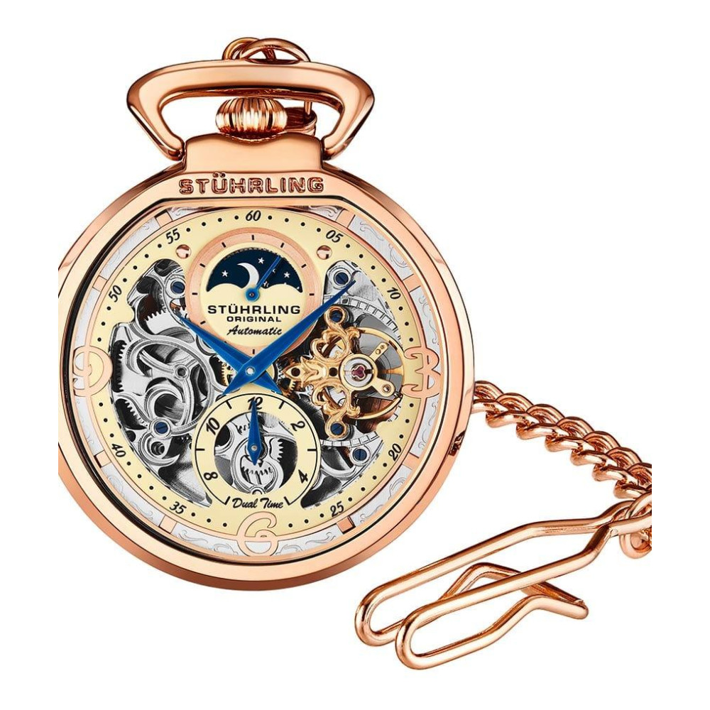 Relógio de Bolso Masculino Stuhrling Modena 991 Automático 48mm Ouro Rosa
