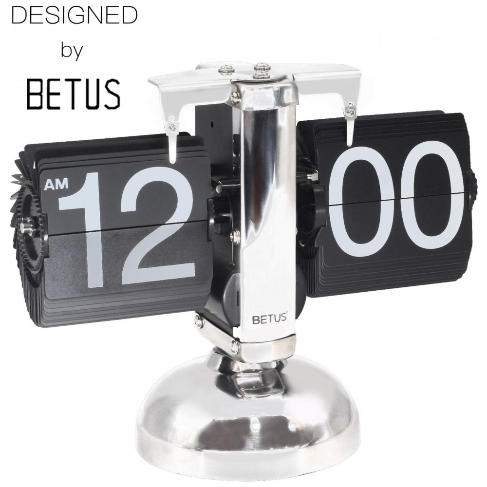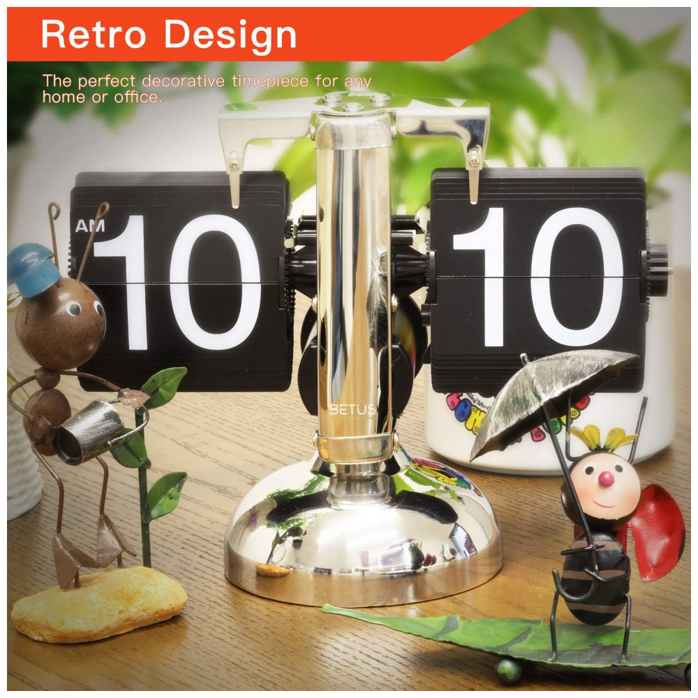 Relógio de Mesa Retrô Decorativo Mecânico Alimentado por Bateria Betus Prata e Preto