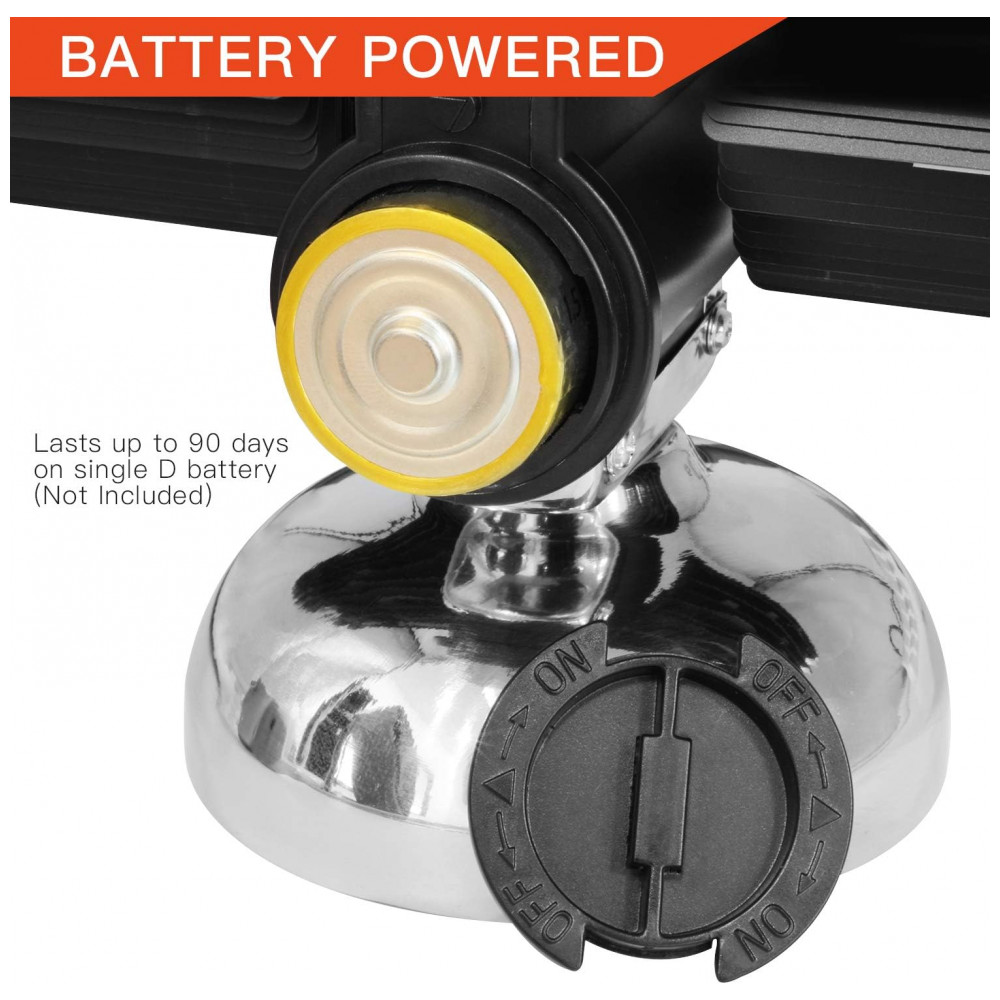 Especificações Ajuste através de um único botão ao lado da exibição de minutos. É aconselhável definir o tempo um minuto à frente para compensar o mecanismo do relógio. Display de 12 horas AM, PM. Aproximadamente 20 centímetros de comprimento, 7,5 centímetros de largura e 16,5 centímetros de altura. Com estrutura de aço inoxidável, cartões ABS e oscilador de quartzo. Alimentado por 1 x bateria tipo D não incluída