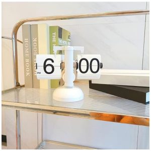 Relógio de Mesa Retrô Flip Decorativo Operado por Engrenagem Interna a Bateria HERCHR Branco