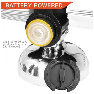 Especificações Ajuste através de um único botão ao lado da exibição de minutos. É aconselhável definir o tempo um minuto à frente para compensar o mecanismo do relógio. Display de 12 horas AM, PM. Aproximadamente 20 centímetros de comprimento, 7,5 centímetros de largura e 16,5 centímetros de altura. Com estrutura de aço inoxidável, cartões ABS e oscilador de quartzo. Alimentado por 1 x bateria tipo D não incluída