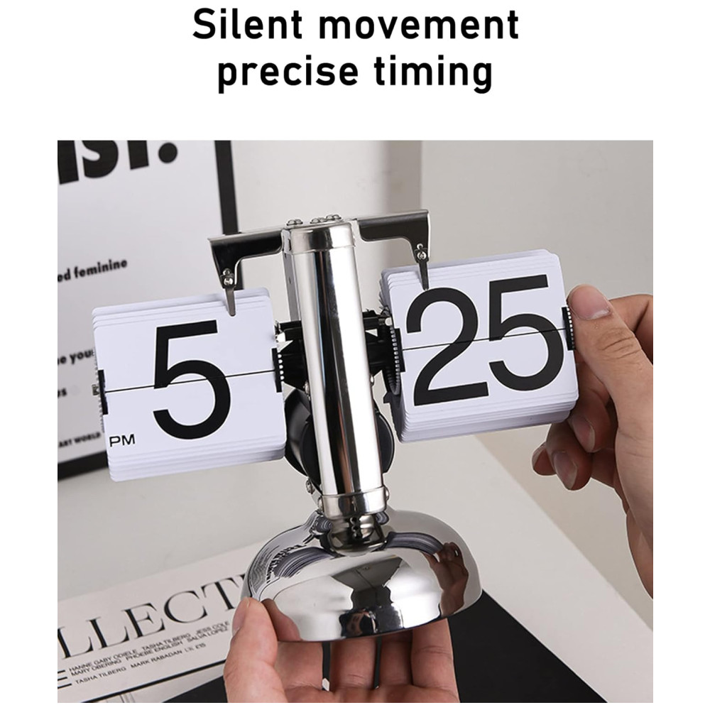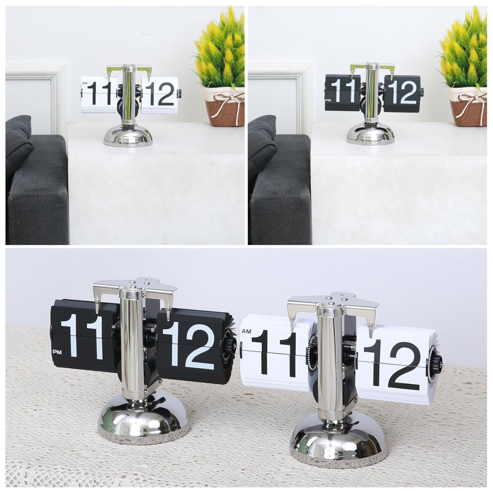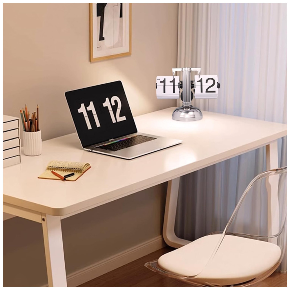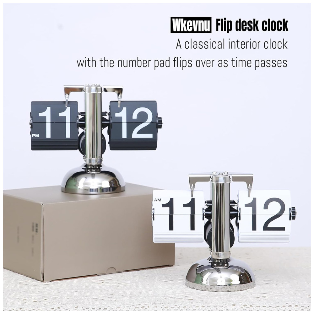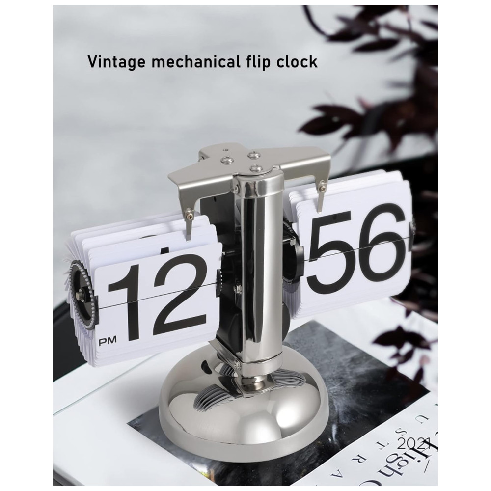 Relógio de Mesa Vintage com Flip Automático Operado por Engrenagem a Bateria Wkevnu Prata e Branco