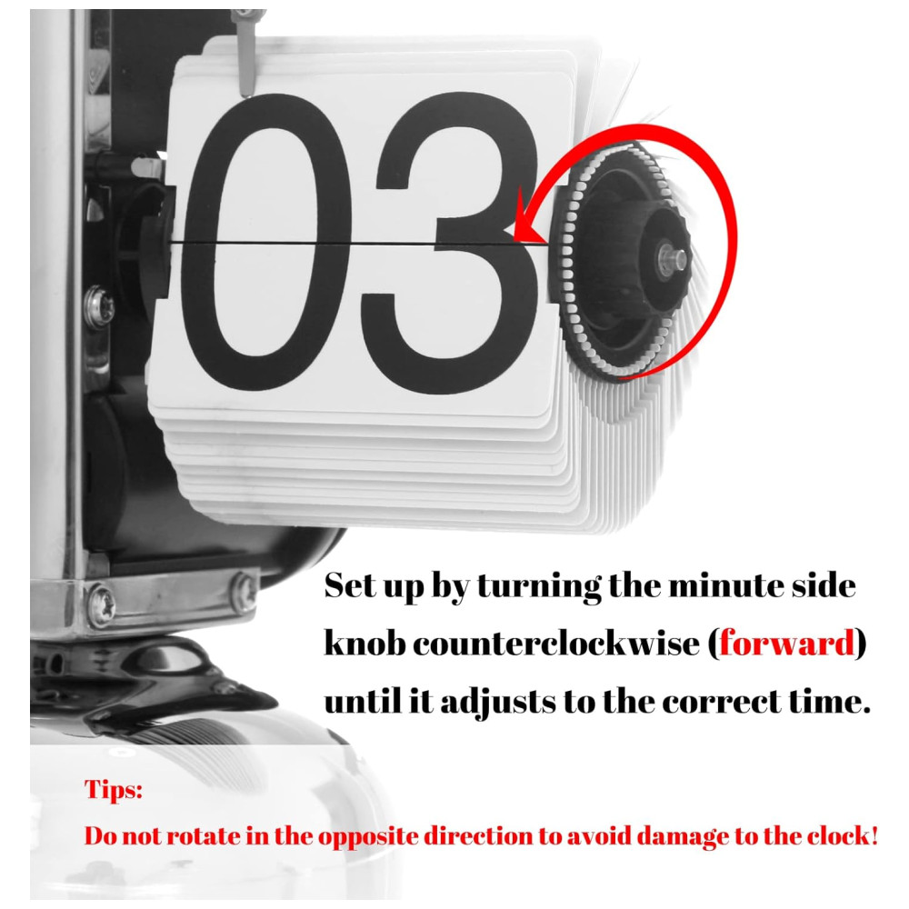 Fácil de configurar: você só precisa girar o botão no lado direito lado dos minutos do relógio digital no sentido anti horário para frente e ajustar as lâminas do cronógrafo estilo placar para a hora correta para acertar este relógio de mesa retrô.
