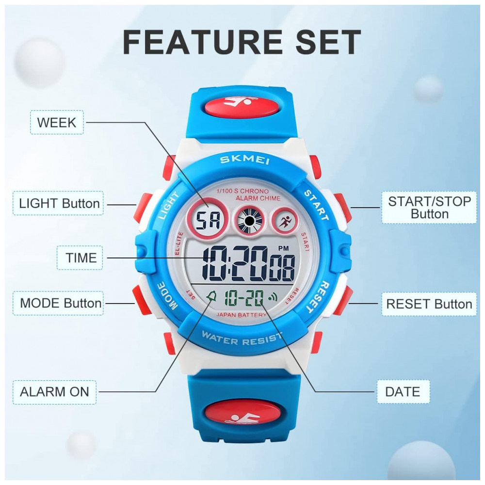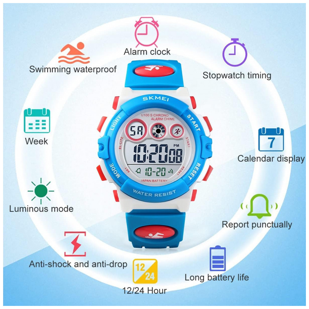 Relógio Digital com Cronômetro para Crianças de 5 até 15 Anos GOLDEN HOUR Azul e Branco