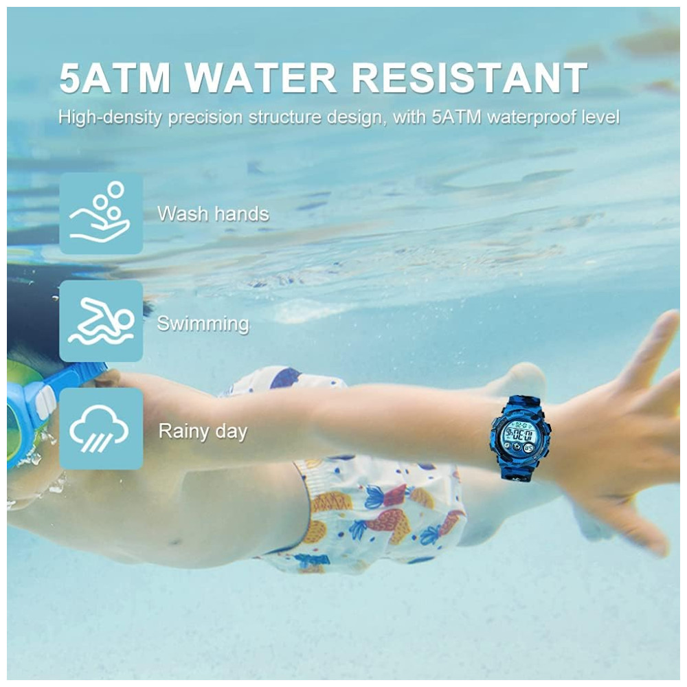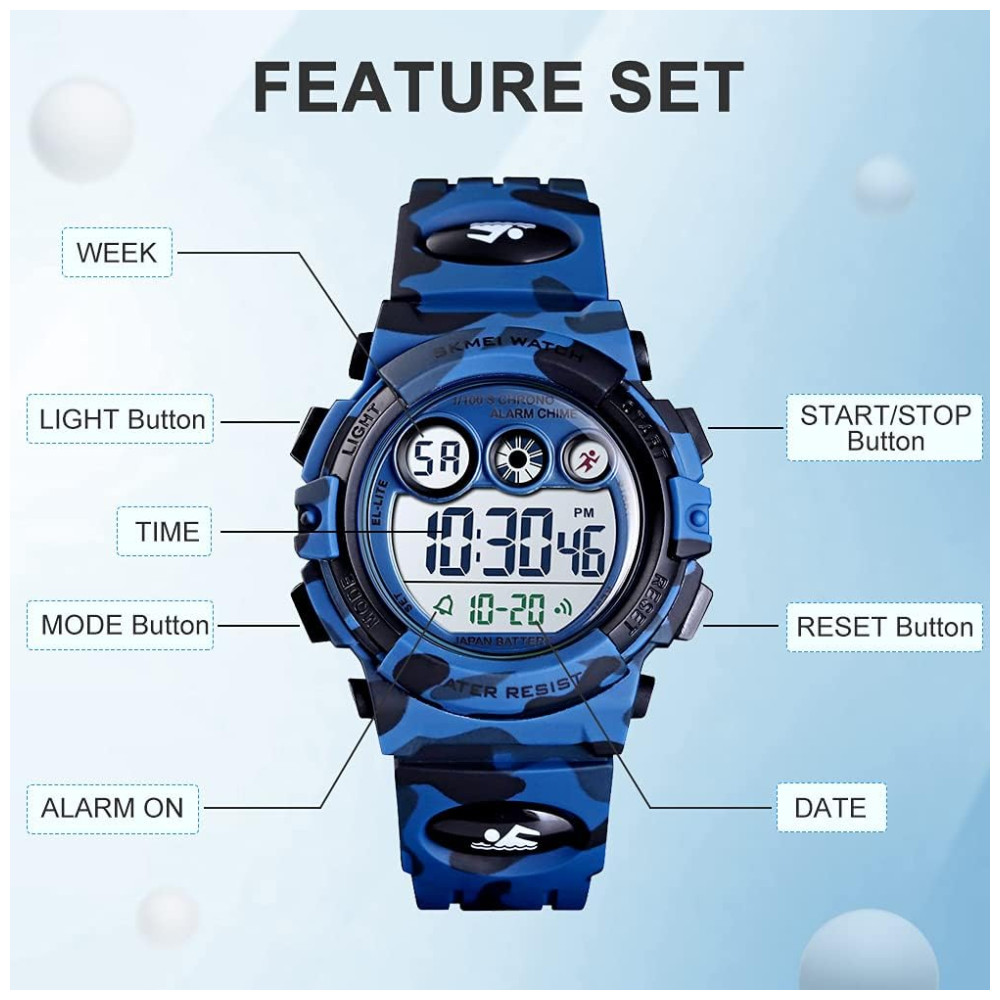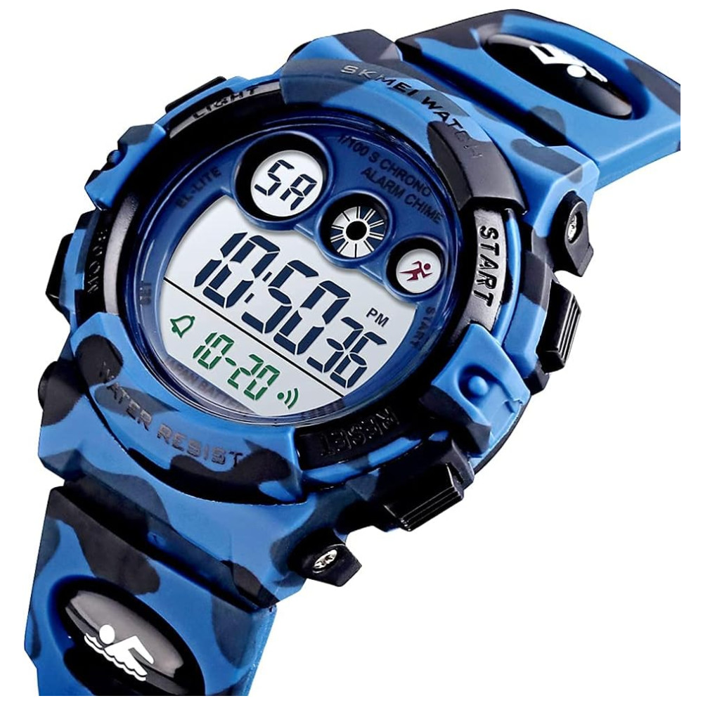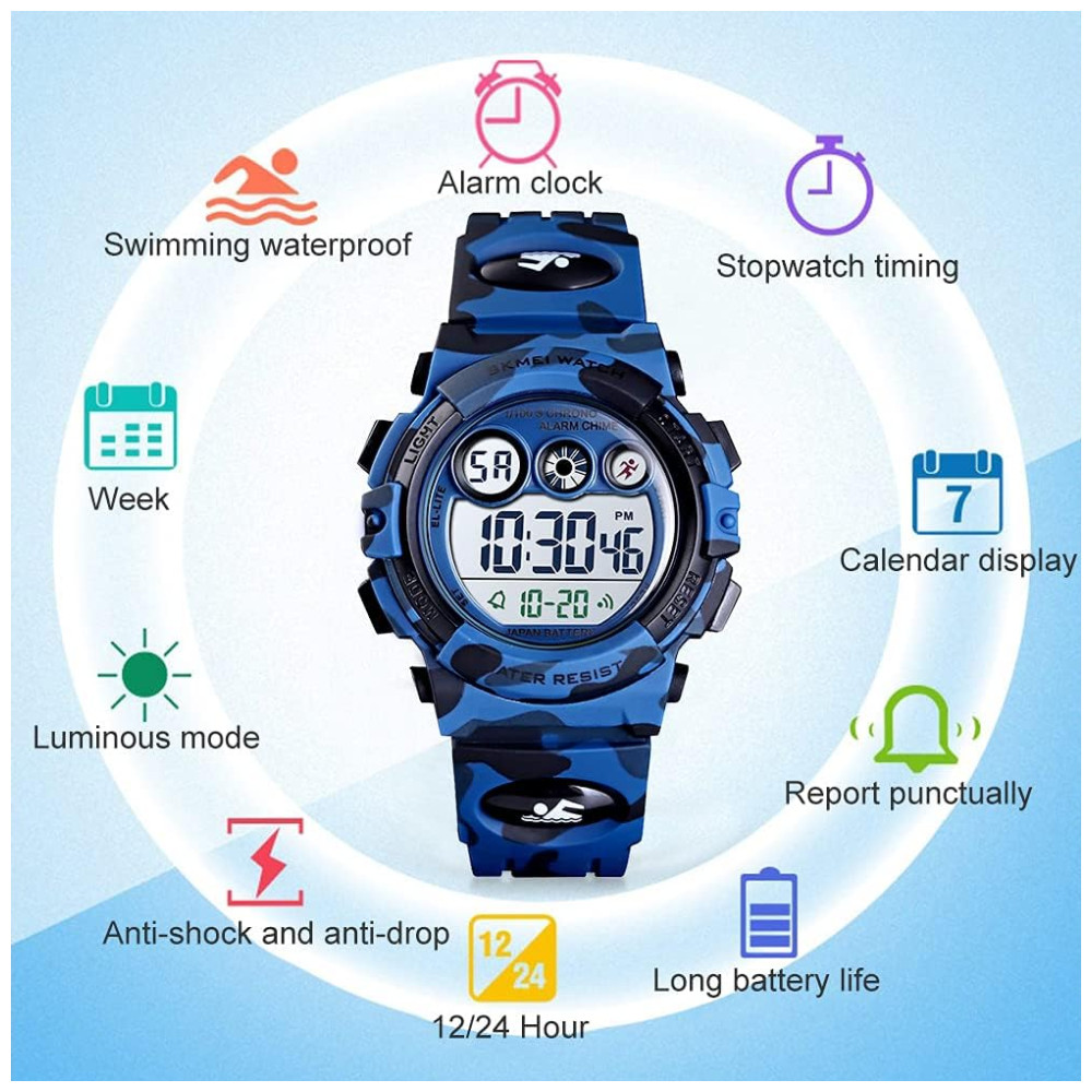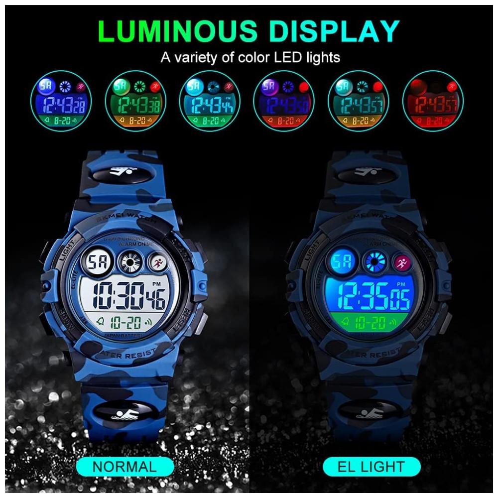 Relógio Digital com Cronômetro para Crianças de 5 até 15 Anos GOLDEN HOUR Azul Escuro Camuflado
