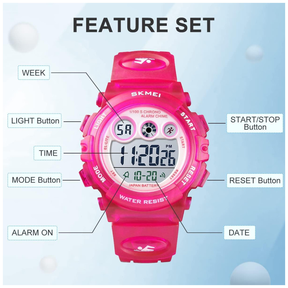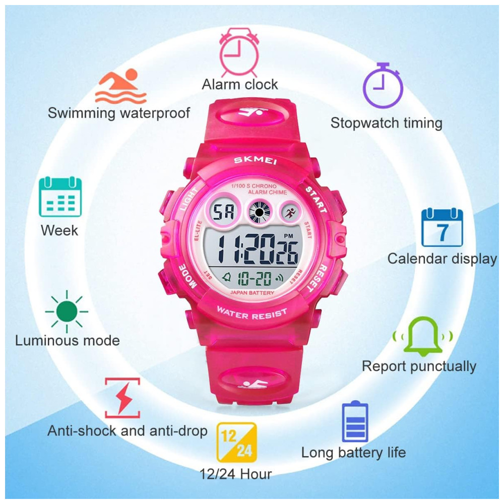 Relógio Digital com Cronômetro para Crianças de 5 até 15 Anos GOLDEN HOUR Rosa Escuro