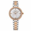 Este relógio possui um diâmetro de 37 mm e é resistente à água até 50 metros (165 pés). Sua moldura é polida e chanfrada, e a pulseira é feita de malha de aço inoxidável com largura de 14 mm.