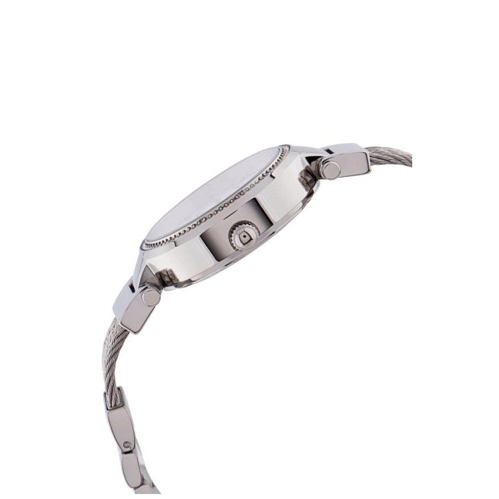 Este atraente relógio Invicta da coleção Angel é movido por um movimento Quartz preciso, com caixa de aço. Seu mostrador é decorado por um mostrador de metal branco e protegido por um resistente Flame Fusion Crystal. Uma faixa de cabo de aço inoxidável completa este relógio que pode resistir à água por até 100 m.