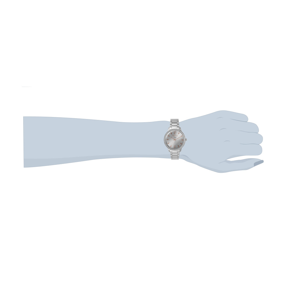 Este lindo relógio Invicta Angel contém um movimento preciso de quartzo além de uma caixa de aço. Seu mostrador exibe um mostrador de metal prateado protegido por um Cristal Flame Fusion altamente resistente. Este relógio é completado por uma pulseira de aço inoxidável e oferece resistência à água de até 50 m.