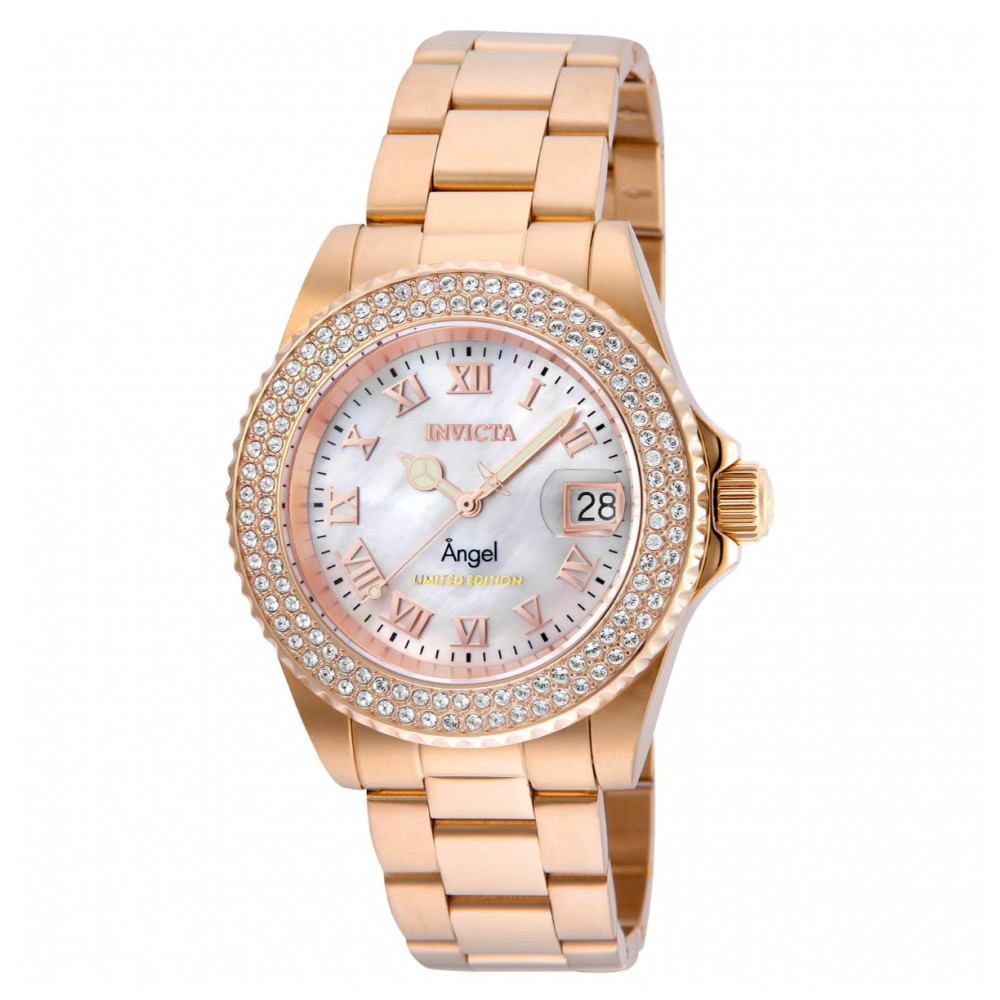 Este impressionante relógio feminino Invicta Angel apresenta um movimento de Quartzo preciso, além de uma caixa em tom de ouro rosa. Seu mostrador branco de madrepérola é protegido por um cristal mineral altamente resistente. Este relógio é finalizado por uma resistente pulseira de aço inoxidável em ouro rosa, e oferece resistência à água de 200 m. Padrões de energia etérea conectam o tempo a um plano mais elevado com a coleção Invicta Angel. Harmonizando um equilíbrio perfeito entre tempo e estilo, relógios de diversidade graciosa compõem a Angel. Projetada com um toque divino, a Angel oferece uma variedade de opções para satisfazer qualquer humor, ocasião ou gosto. Destacando os aspectos do poder feminino, a coleção Invicta Angel não conhece limites, transcendendo planos terrenos e alcançando o ideal em manter o tempo. Desde sua fundação em La ChauxdeFonds, Suíça, em 1837, um compromisso com a excelência e inovação tem sido o cerne de cada coleção criada pela Invicta. Aqui na Invicta Stores, oferecemos o catálogo mais extenso de relógios desta magnífica marca com os preços mais baixos online. Com a gente, você encontrará um atendimento ao cliente superior, uma garantia de 3 anos e um compromisso de longa data em oferecer o melhor valor possível. Em algumas instâncias, as cores nas imagens podem diferir ligeiramente do produto real.